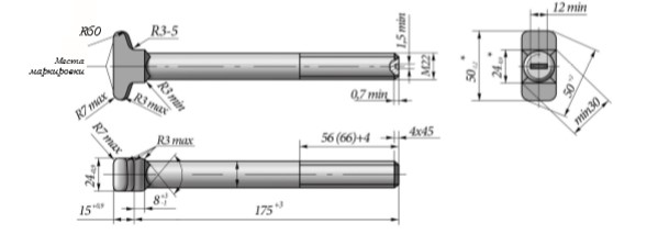 Сечение: квадратное с размером сторон 22 мм.